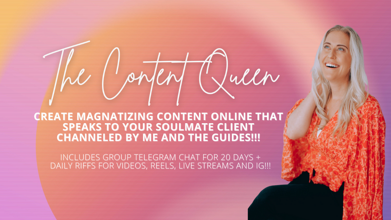 Join me over 20 days in telegram chat where we will riff together on your content + I will channel what the guides want you to know and what to put out into the world.